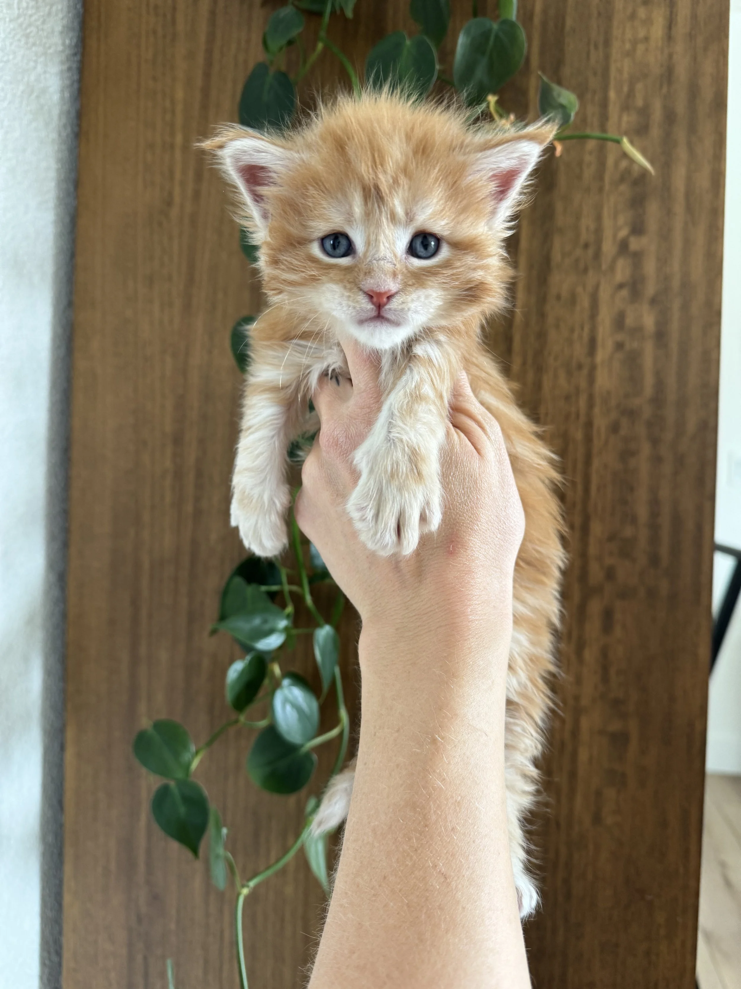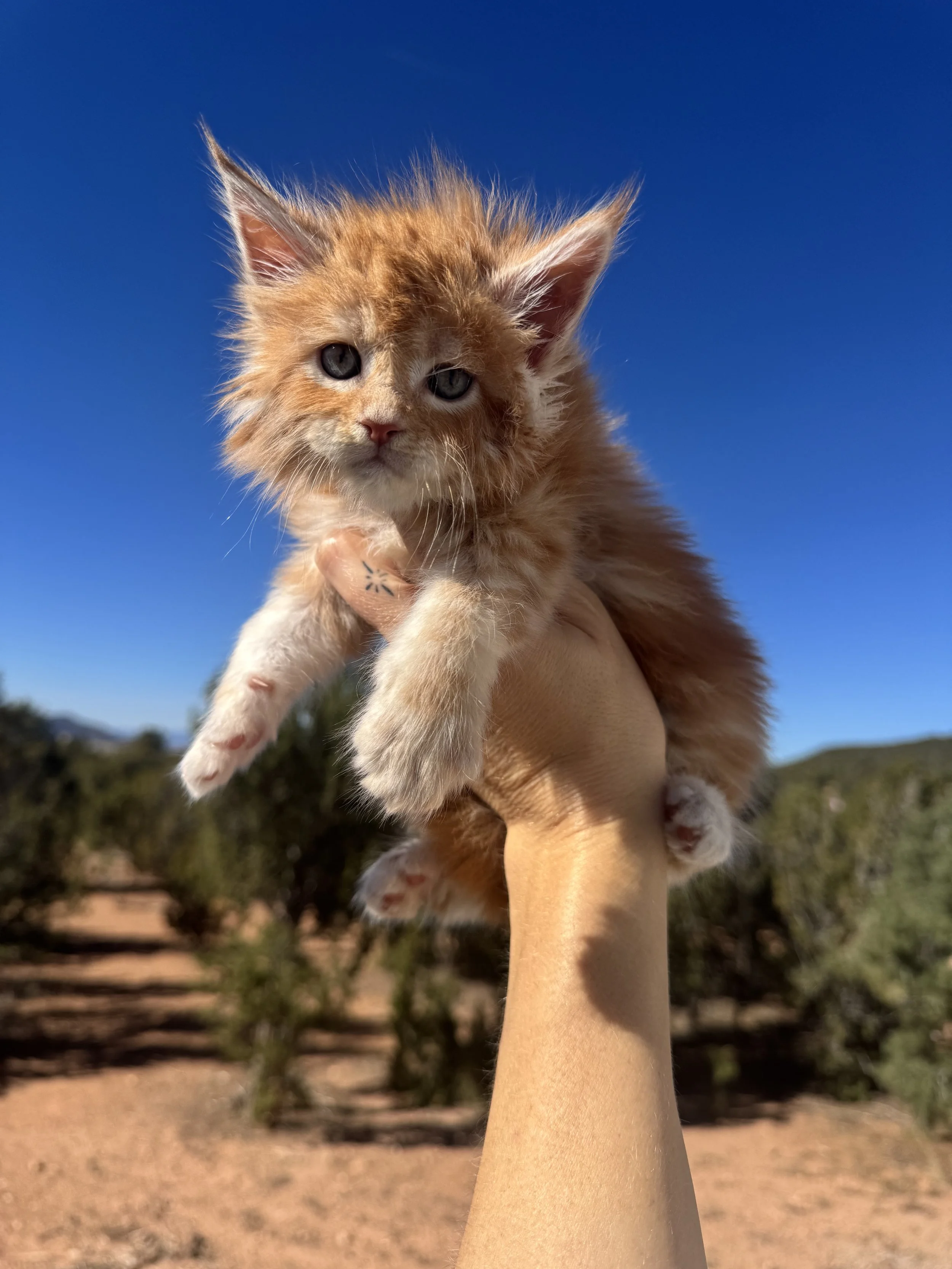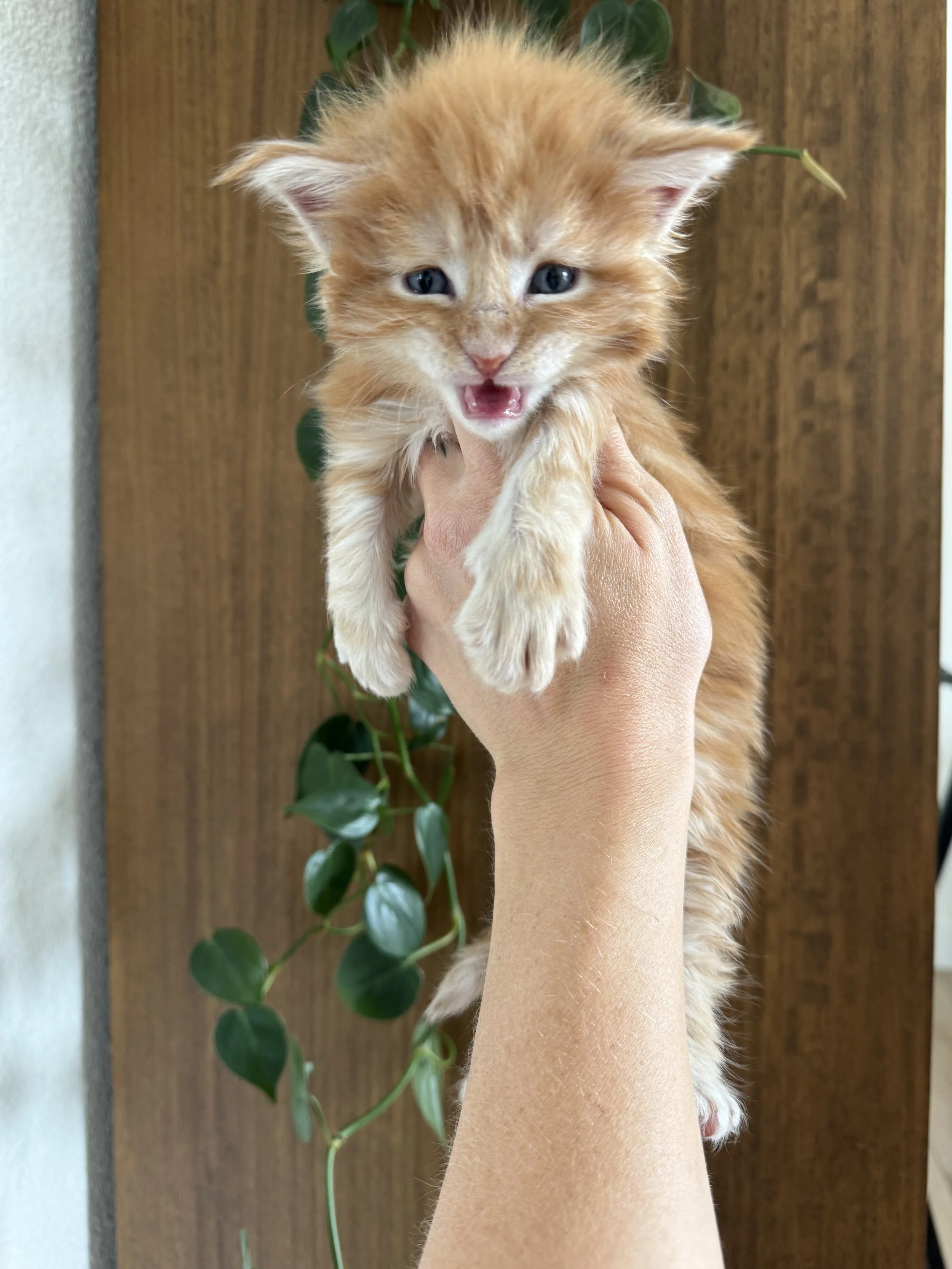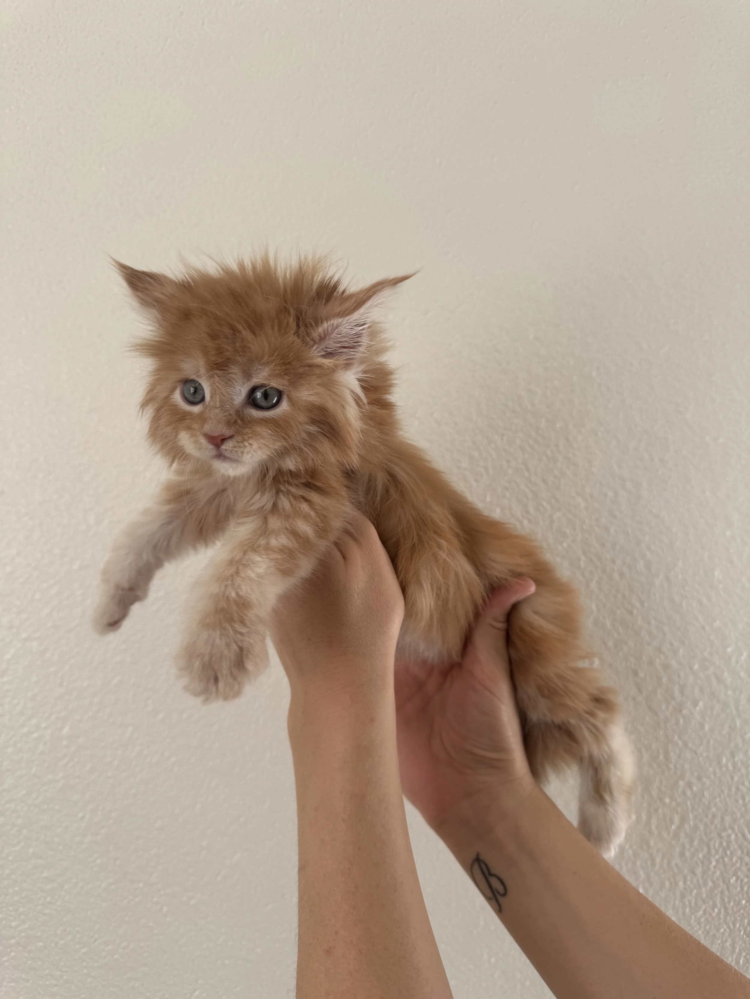 HAIR GOALS! Long and fluffy. His eyes are still so baby blue- I know it won’t stay that way but I wonder if he will have a lighter shade of green or gold. Somehow he jumped ahead and leads the pack in size this week! So curious how he’ll turn out as a grown-up MC!