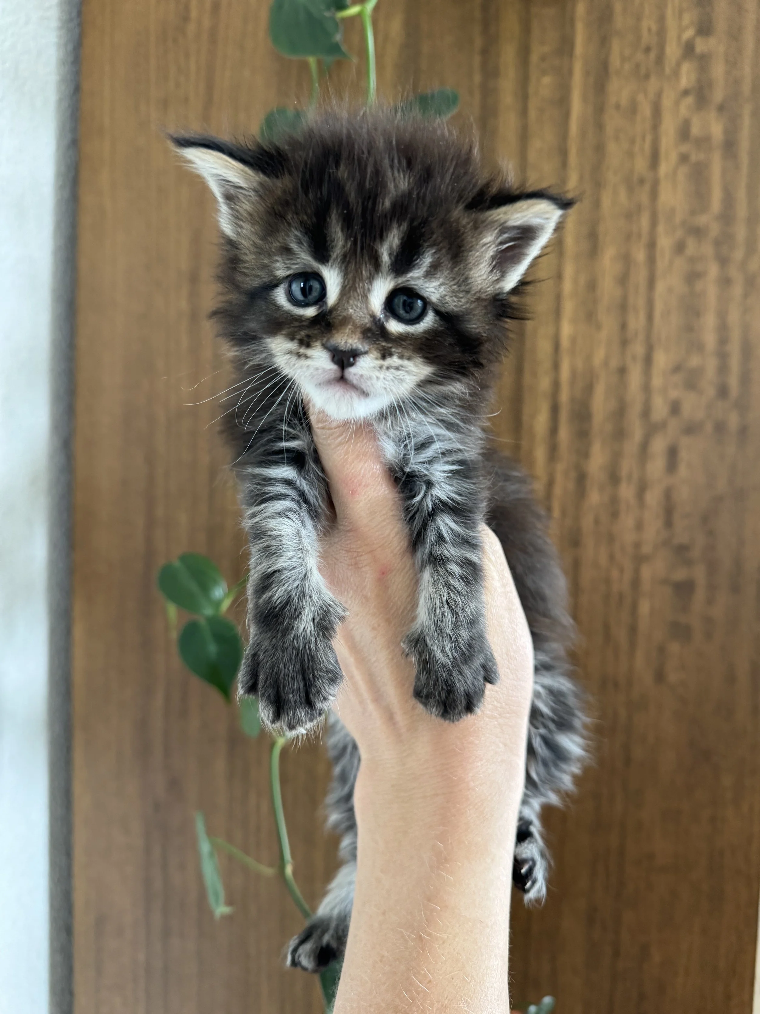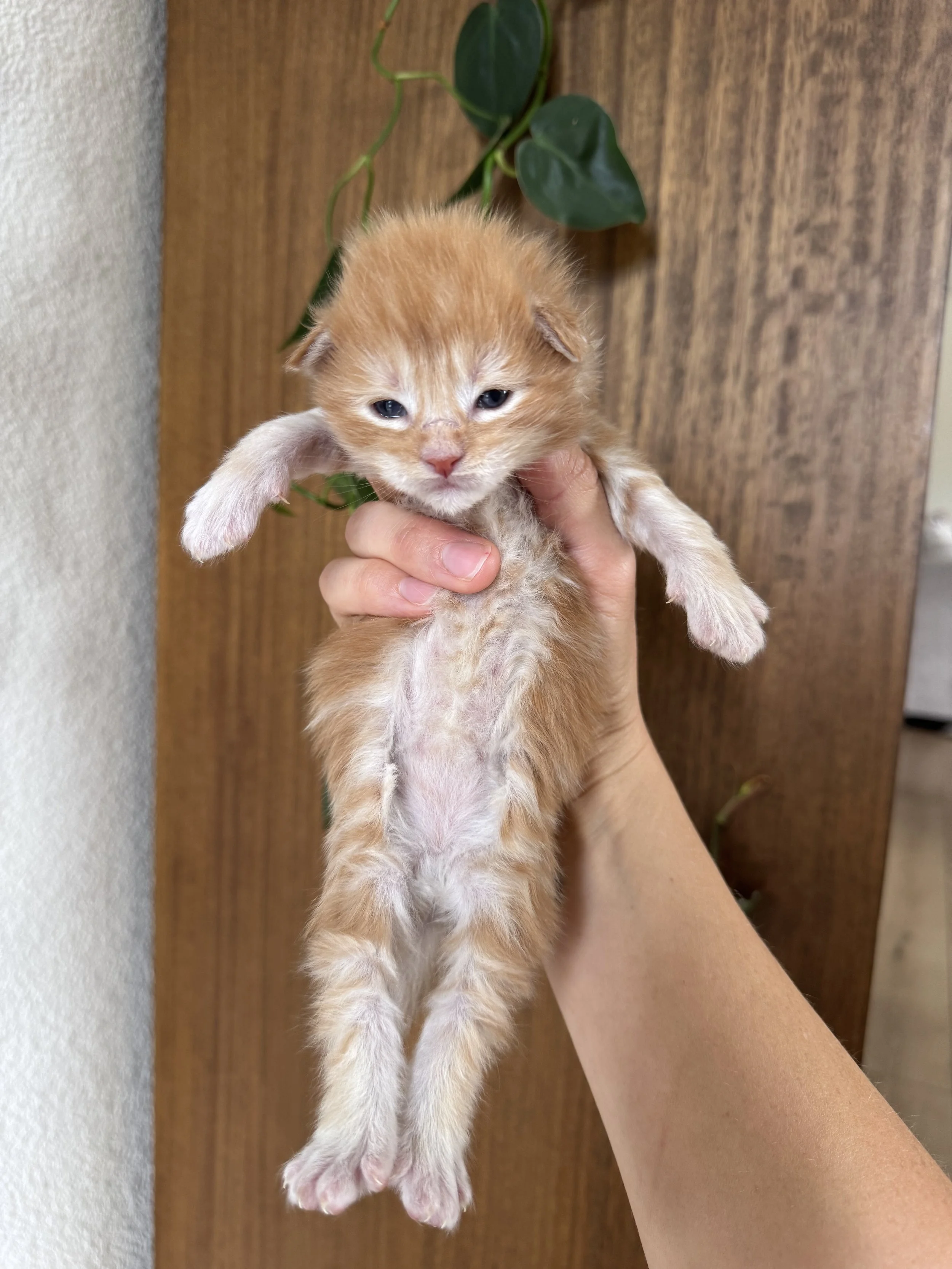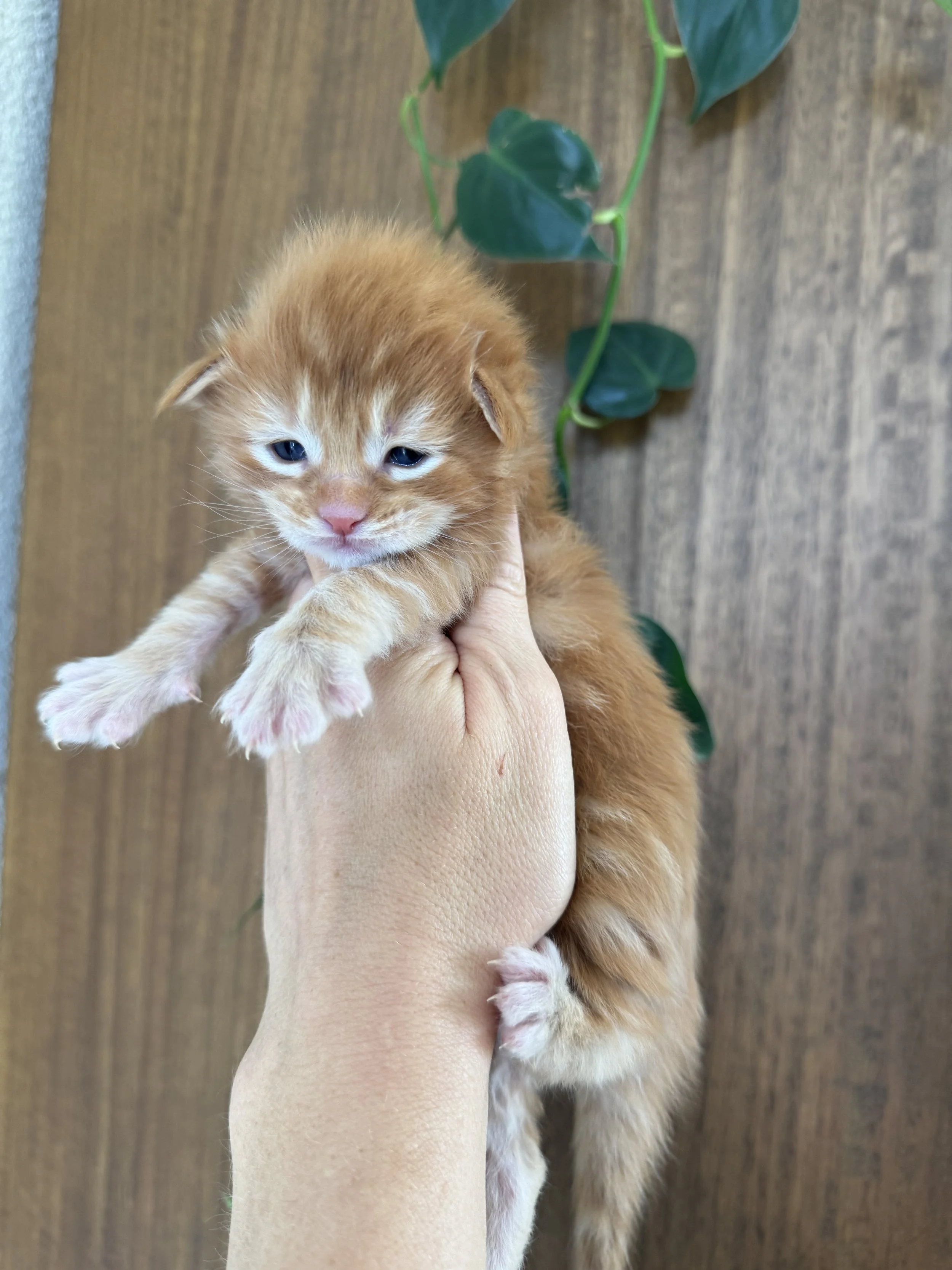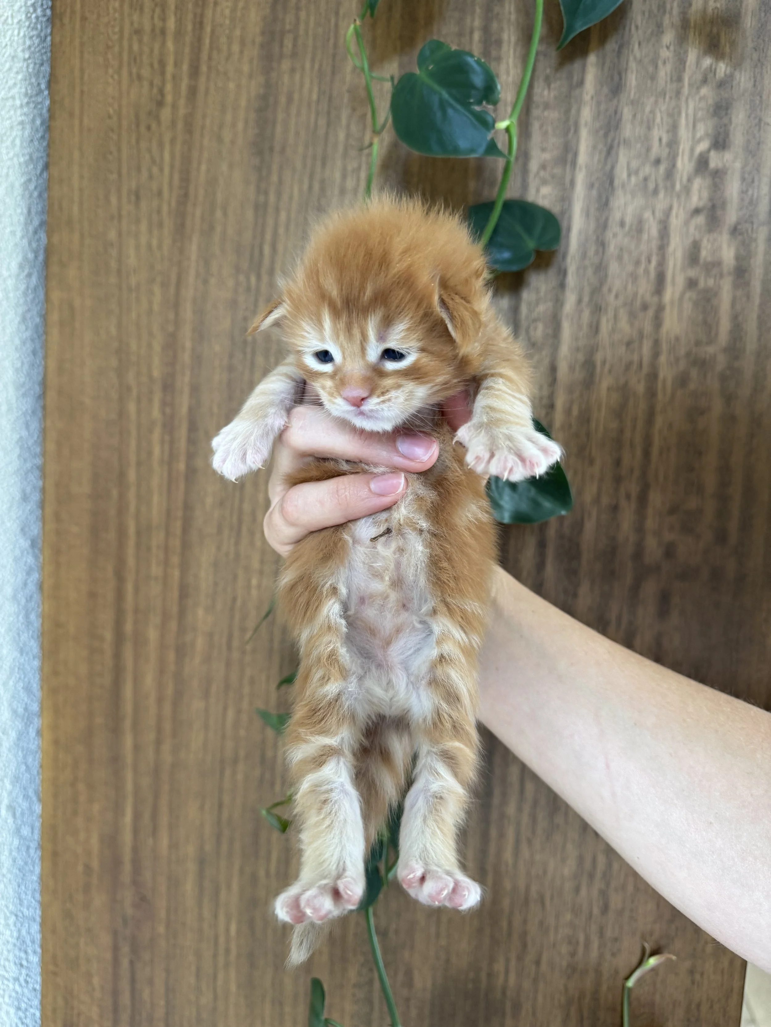 HAIR GOALS! Long and fluffy. His eyes are still so baby blue- I know it won’t stay that way but I wonder if he will have a lighter shade of green or gold. Somehow he jumped ahead and leads the pack in size this week! So curious how he’ll turn out as a grown-up MC!