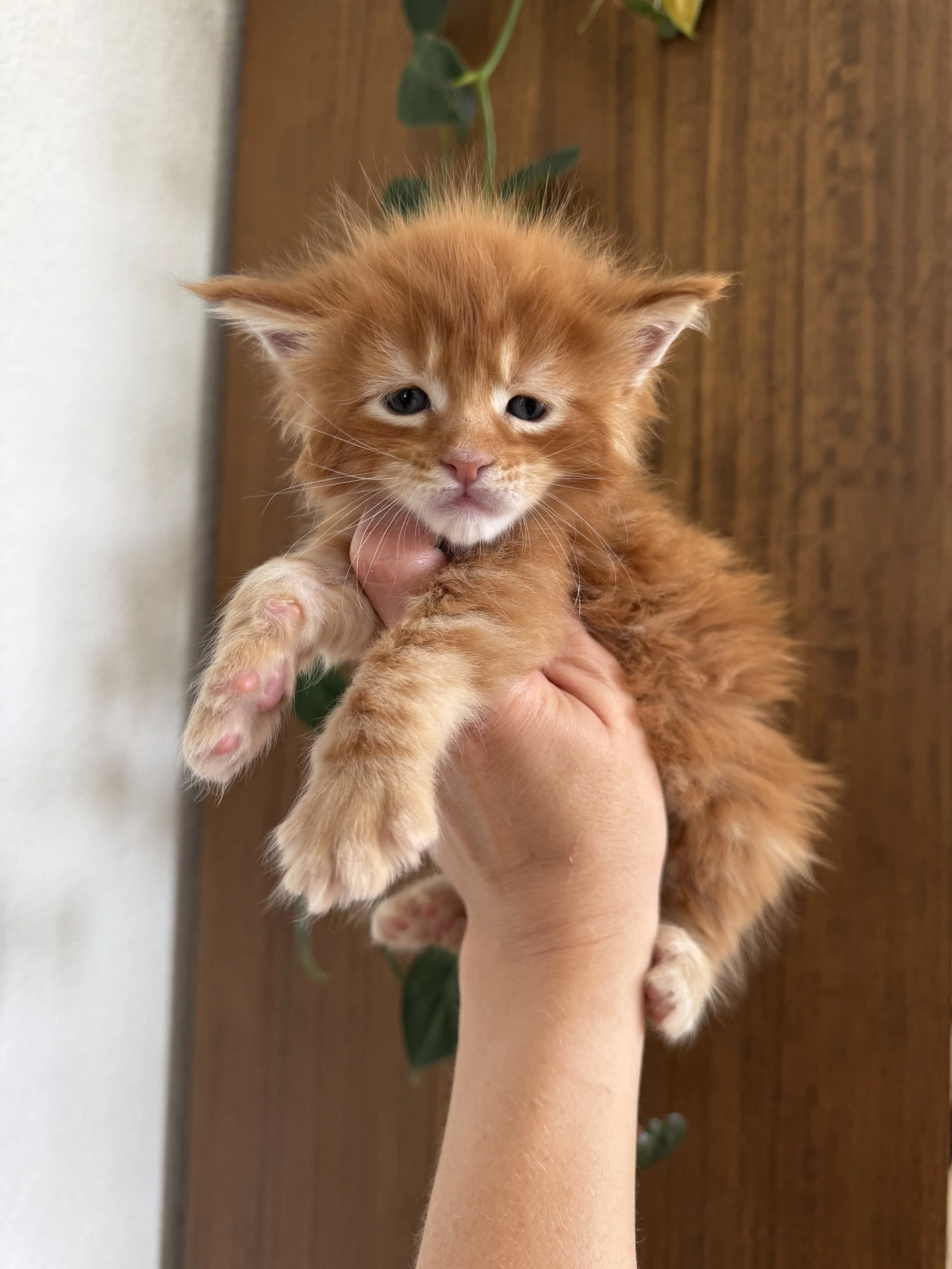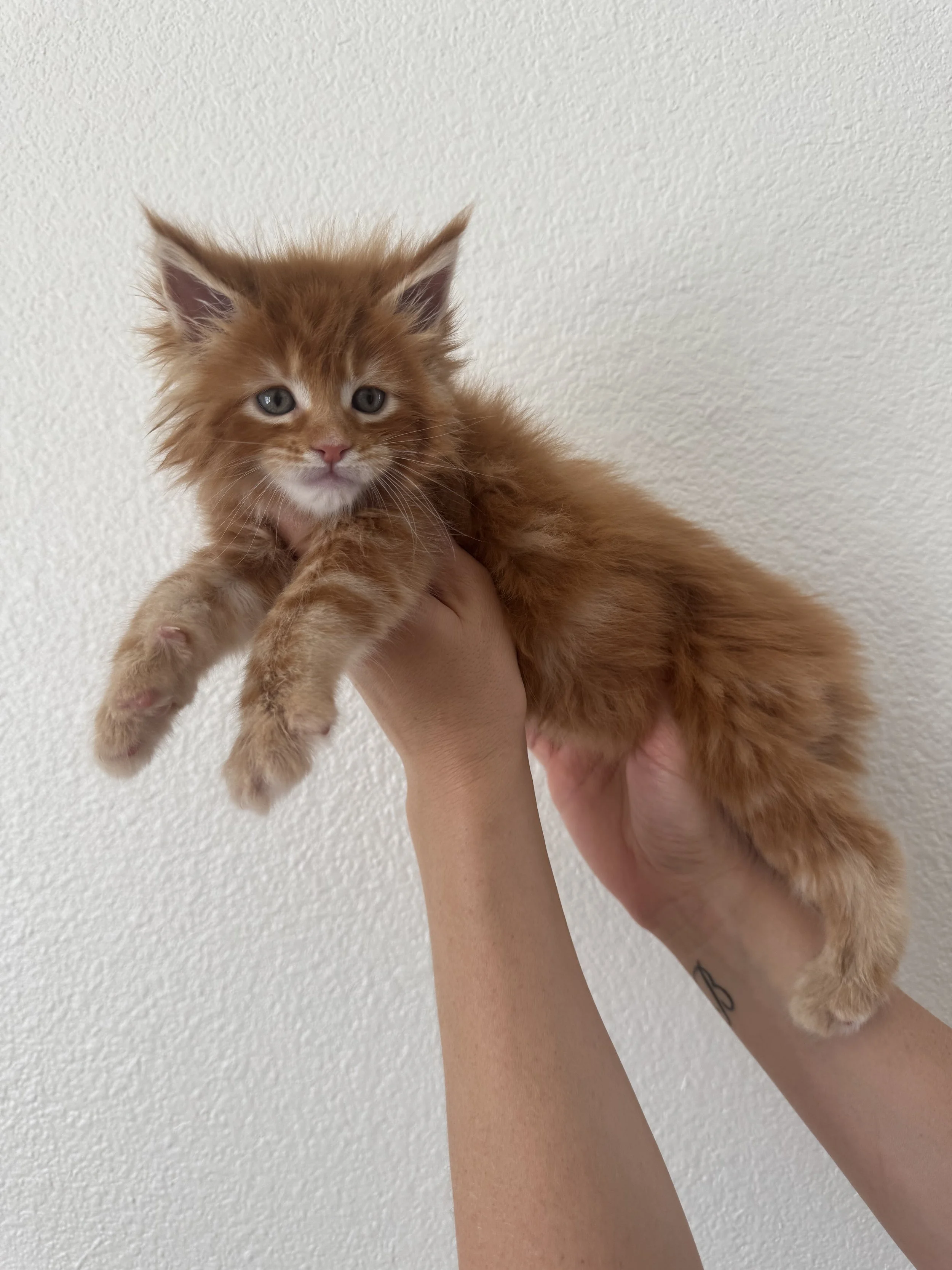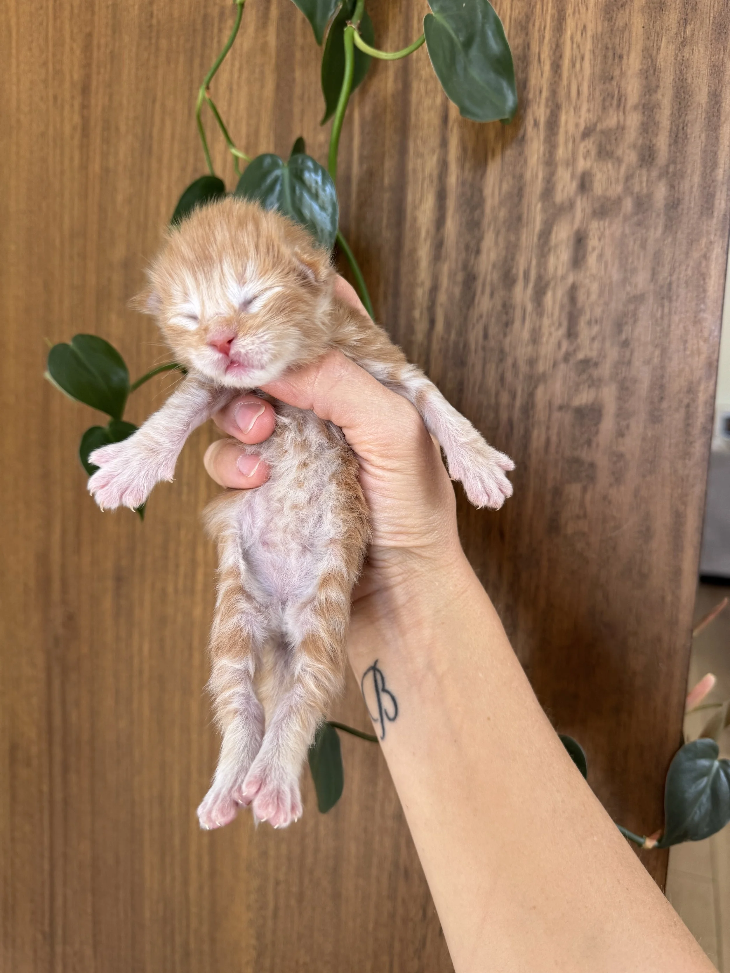 This handsome boy stands out from his sisters in the sweetest way. While they’re full of sass, he settles right down the moment I hold him, almost as if he’s already familiar with my scent. He’s the biggest of the bunch- a solid and healthy boy! His coat is a rich and vibrant red