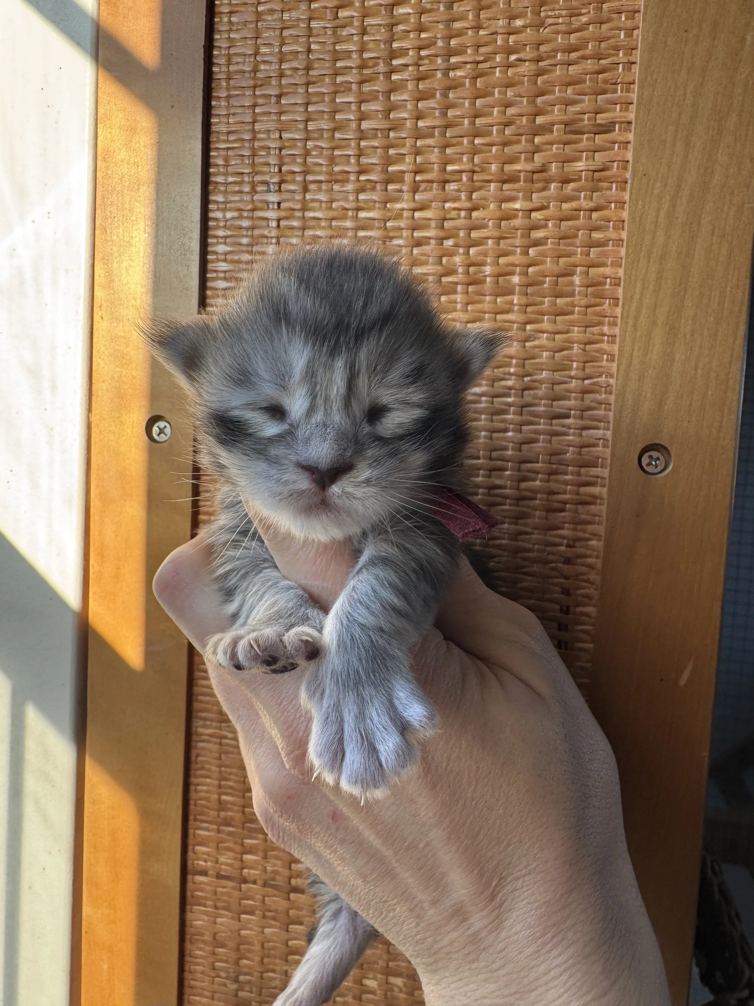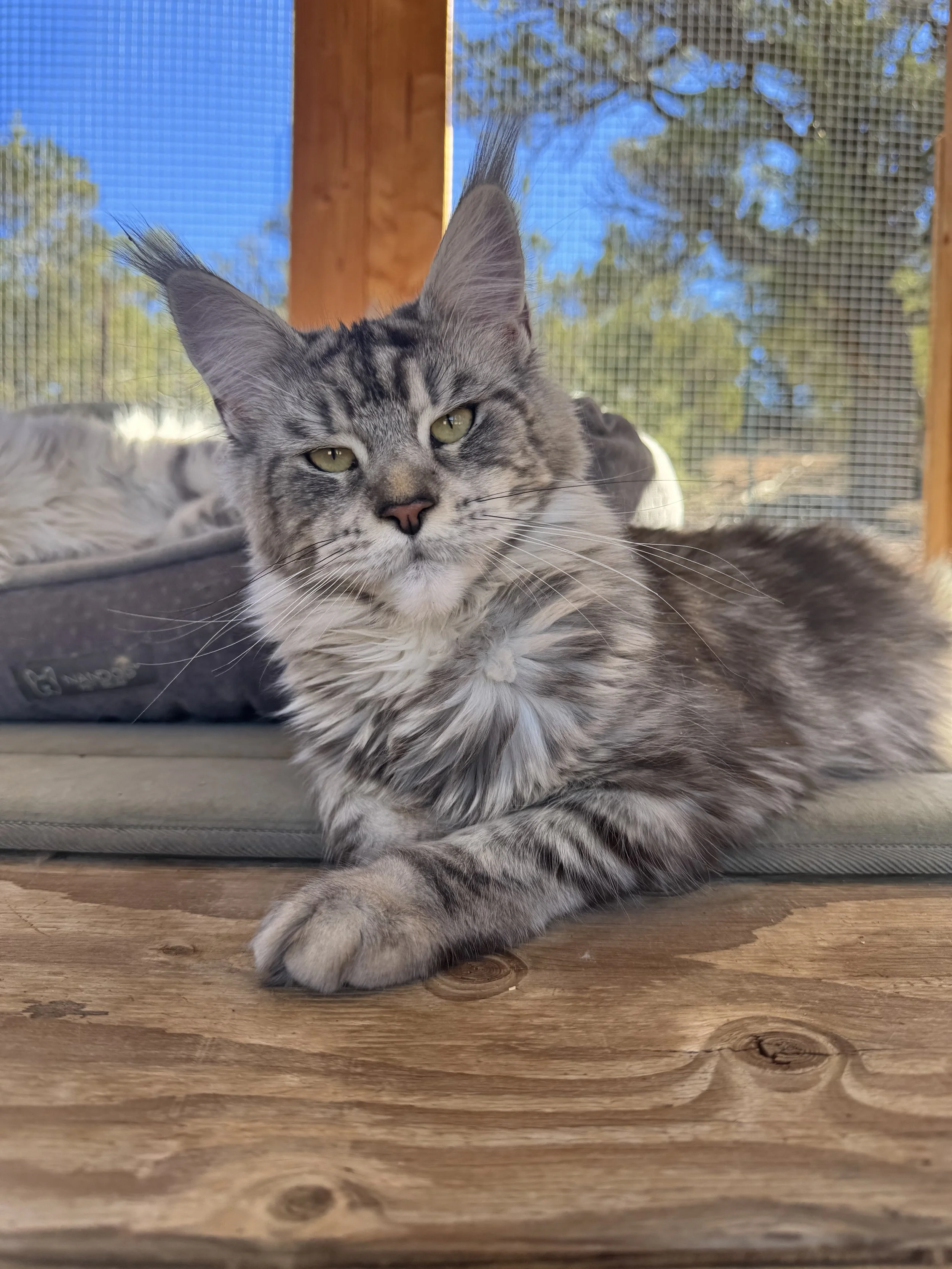 All kittens will remain under observation until around 8 weeks old, and we will likely keep one back to continue the strength and style of our lines. Each kitten has such unique markings and already has that unmistakable Maine Coon expression we all adore.